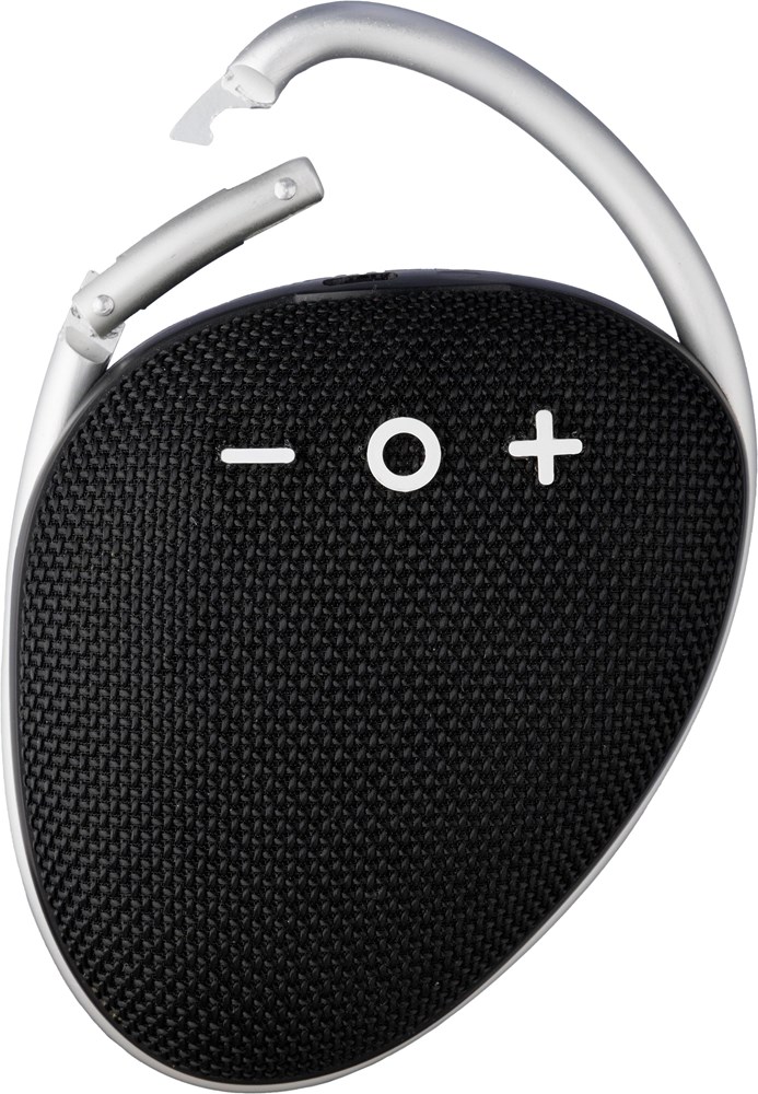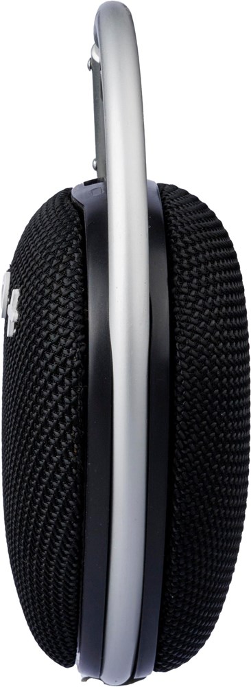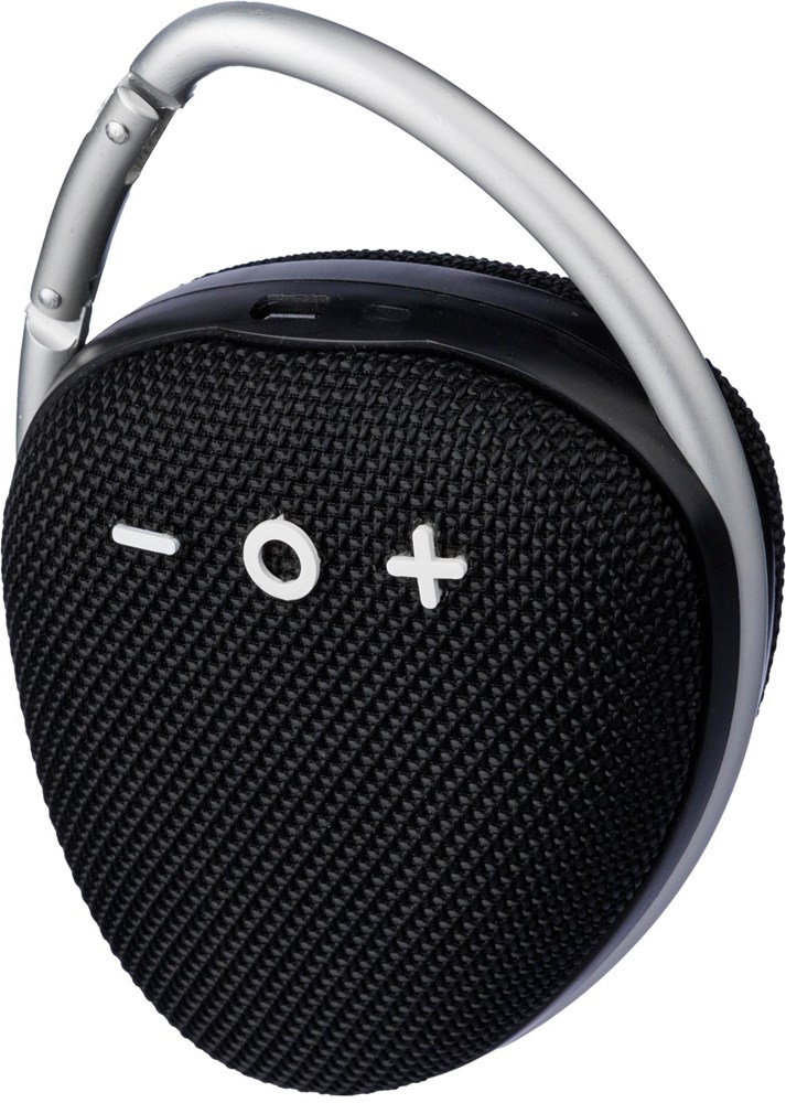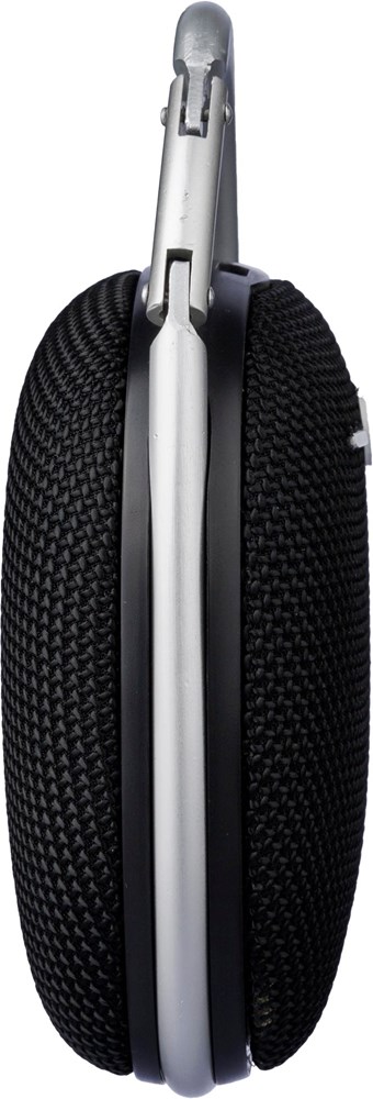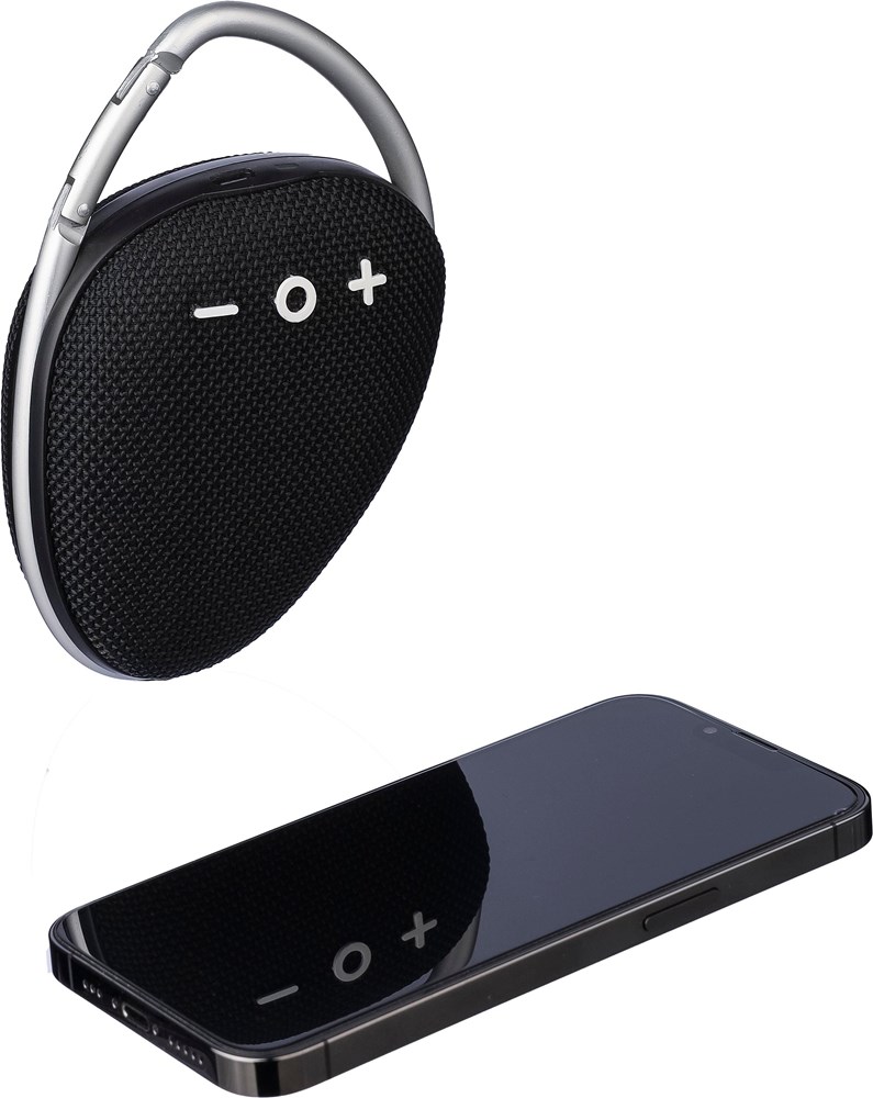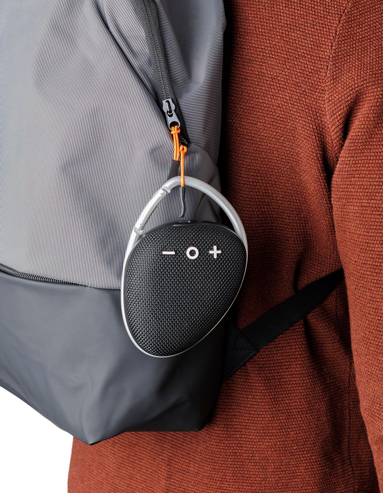 ABS outdoor speaker with carrying cord. 5W output, DC 5V input, 800mAh built-in rechargeable battery, and 3.5 hours of playing time. Working distance of 15-20 meters, signal-to-noise ratio of 75 dB. Frequency range: 100 Hz to 20 kHz. Includes 30 cm Type-C charging cable. Wireless connection technology: 4.2. Individually packaged in a brown cardboard box.