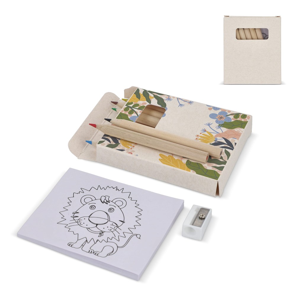 A complete creativity set for on-the-go fun, featuring 6 coloring pencils, a sharpener, and a coloring book, all neatly packed in a recycled milkcarton box. Perfect for travel, it offers hours of entertainment in a compact package. Pair it with eco digital print for an environmentally conscious option, making it an ideal gift for aspiring artists of all ages.