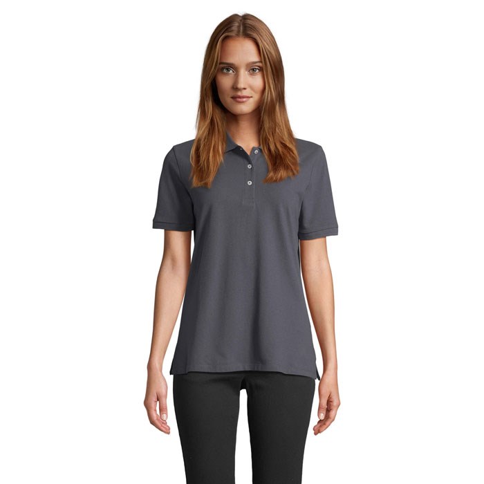 SOL'S PACIFIC WOMEN POLO, women's polo shirt, 100% ring-spun combed cotton, new fit - comfortable fit, short sleeves, stitched cut, ribbed collar and cuffs with elastane, neck tape, reinforced placket with 3 unbleached buttons, straight hem with reinforced side slits, spare button on inside side seam. For size information, please refer to the size chart in the product documentation.