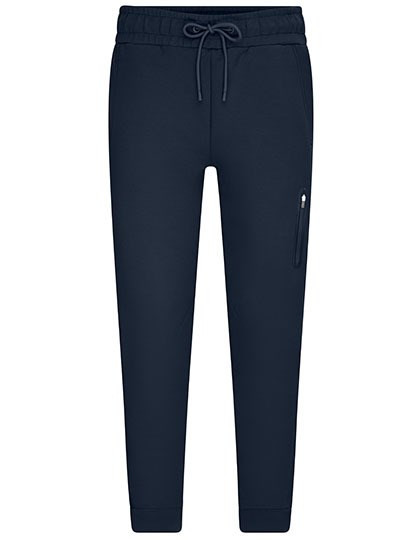 High-quality interlock fabric | Pleasant blend of organic cotton, | recycled polyester and elastane | 2 side pockets | 1 zipped back pocket | 1 zipped pocket on the front right | Zipped pockets bordered with fashionable tape CatalogNr: JN8047 Composition: 63% Cotton / 33% Polyester / 4% Elastane Weight: 360 g/m² Care Instructions: Washable at 30°C|May be ironed Product: Trousers Legs: Long trousers|With cuffs Colorfulness: 1-coloured Production Certificates: OEKO-TEX® STANDARD 100|Fair Working Conditions|Organic Cotton|Recycled Polyester Collection: Heavy Sweat Menu: Men Composition: Cotton (partially)|Polyester (partially)|Elastane (partially) Trousers (kind): Jogging pants