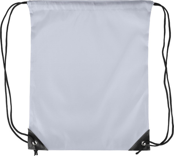 Polyester 210D drawstring backpack with two black PU corners on the front and internal sewing.... more