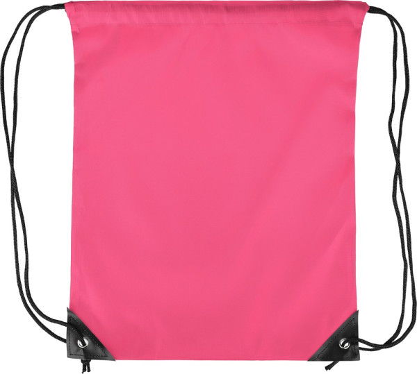 Polyester 210D drawstring backpack with two black PU corners on the front and internal sewing.... more