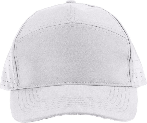 Polyester cap with laser-cut ventilation holes on the back panels. Features a 7-panel design with one panel at the front and a 7 cm visor. Adjustable and breathable, without a PU label.