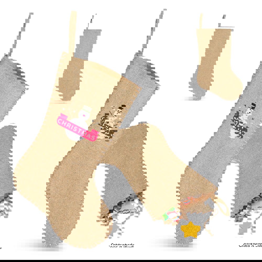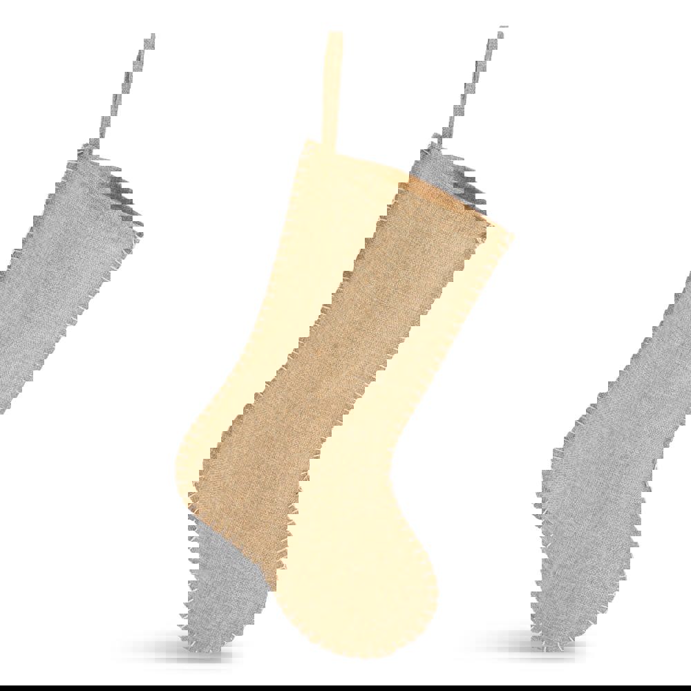 Rustic and charming, this jute-style Christmas stocking is a perfect addition to traditional holiday décor. The edge stitching adds a handcrafted touch, making it ideal for filling with festive surprises.