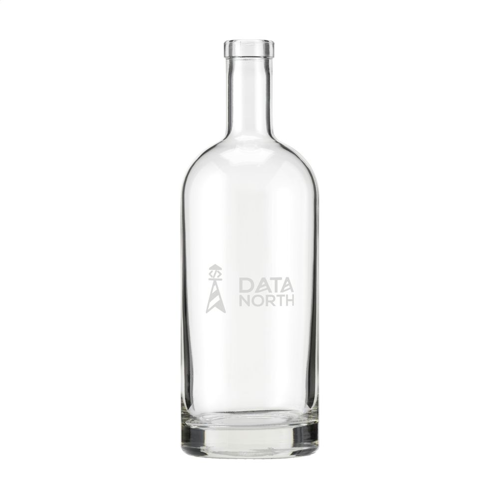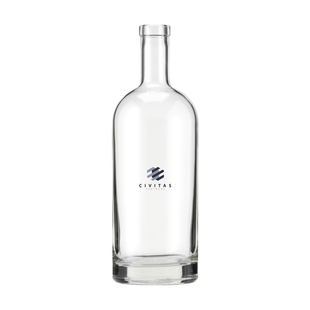 Stylish glass water bottle with a sturdy base. The timeless design makes this bottle ideal as a table bottle and particularly suitable for use in the catering industry. This product is dishwasher-safe. Washing by hand is recommended to preserve the imprint. Capacity 1L.