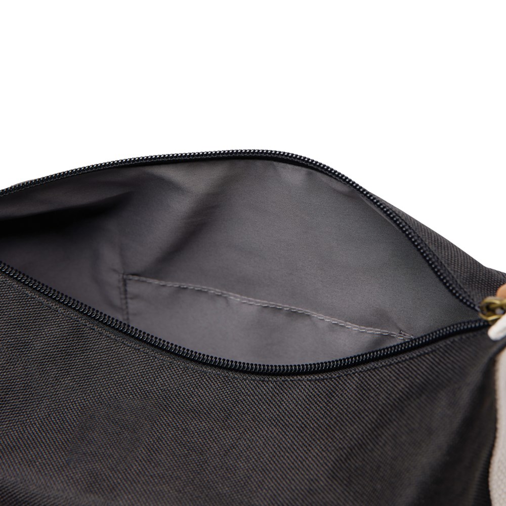 Elevate your travel essentials with this simple yet stylish toiletry bag. Crafted from RCS certified recycled polyester with contrasting details, this bag combines practicality with a refined design. The top handle, secured with a snap button, doubles as a convenient hanging loop. A smooth zipper at the top provides easy access to the main compartment, while the open inner pocket keeps your essentials organised. RCS (Recycled Claim Standard), RCS certification guarantees that the entire supply chain of recycled materials is certified. The total recycled content is based on the overall product weight. This product contains 12% RCS certified recycled polyester.