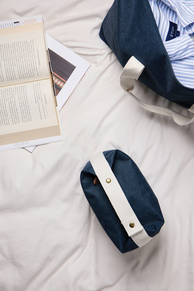 Elevate your travel essentials with this simple yet stylish toiletry bag. Crafted from RCS certified recycled polyester with contrasting details, this bag combines practicality with a refined design. The top handle, secured with a snap button, doubles as a convenient hanging loop. A smooth zipper at the top provides easy access to the main compartment, while the open inner pocket keeps your essentials organised. RCS (Recycled Claim Standard), RCS certification guarantees that the entire supply chain of recycled materials is certified. The total recycled content is based on the overall product weight. This product contains 12% RCS certified recycled polyester.