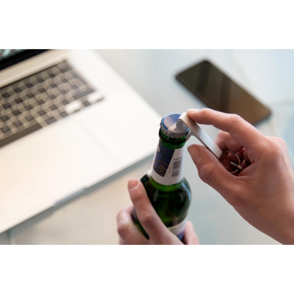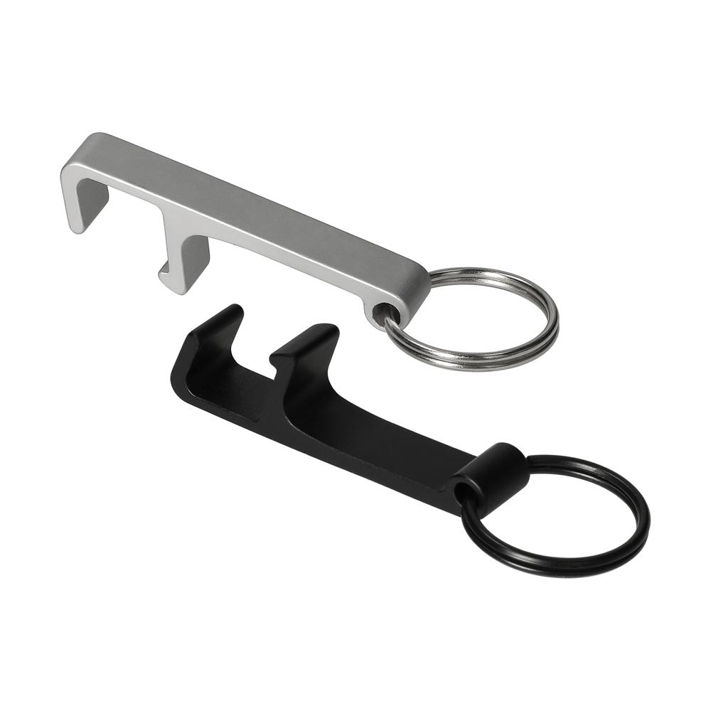2 in 1. The smartly designed keyring serves as a bottle opener as well as a smartphone holder.