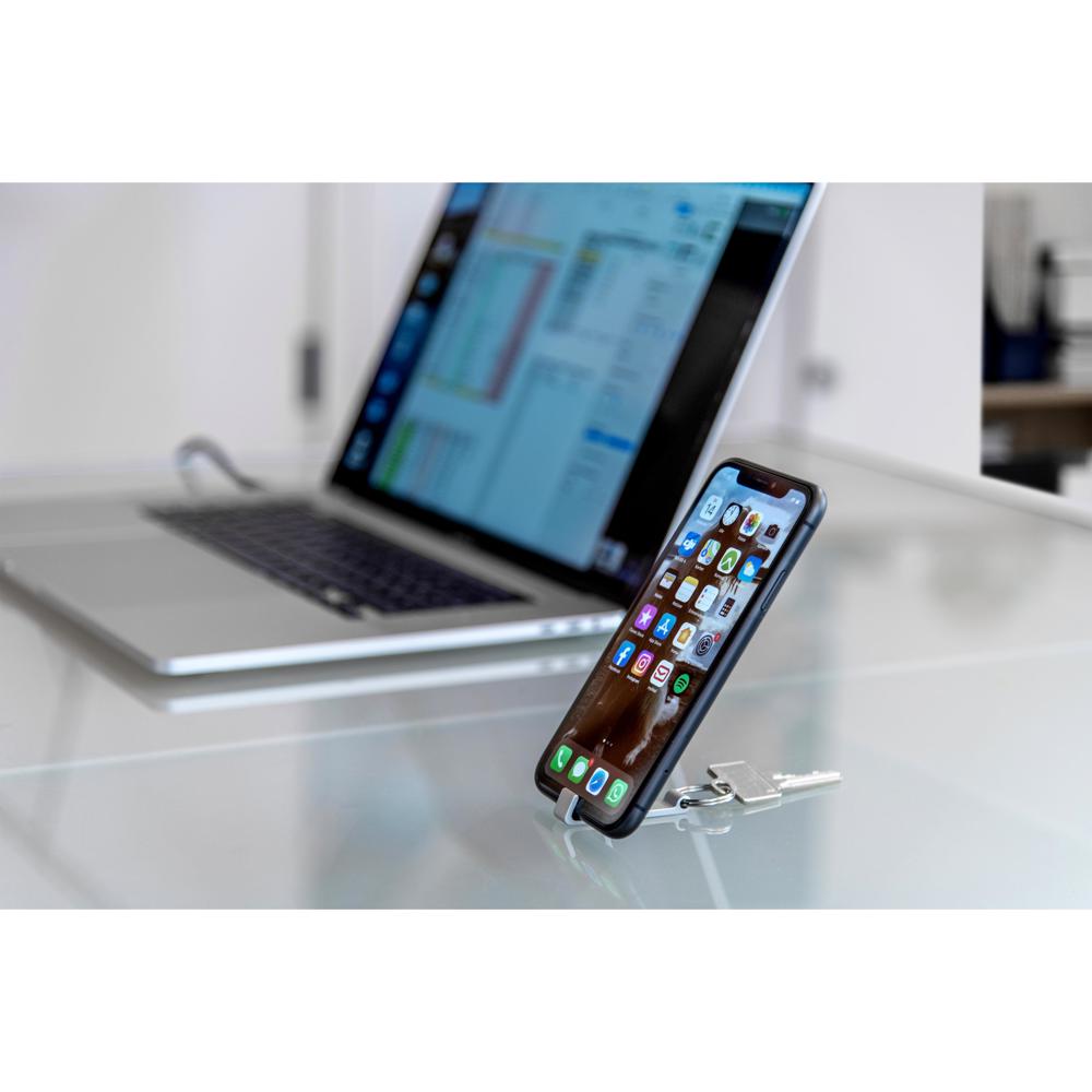 2 in 1. The smartly designed keyring serves as a bottle opener as well as a smartphone holder. more
