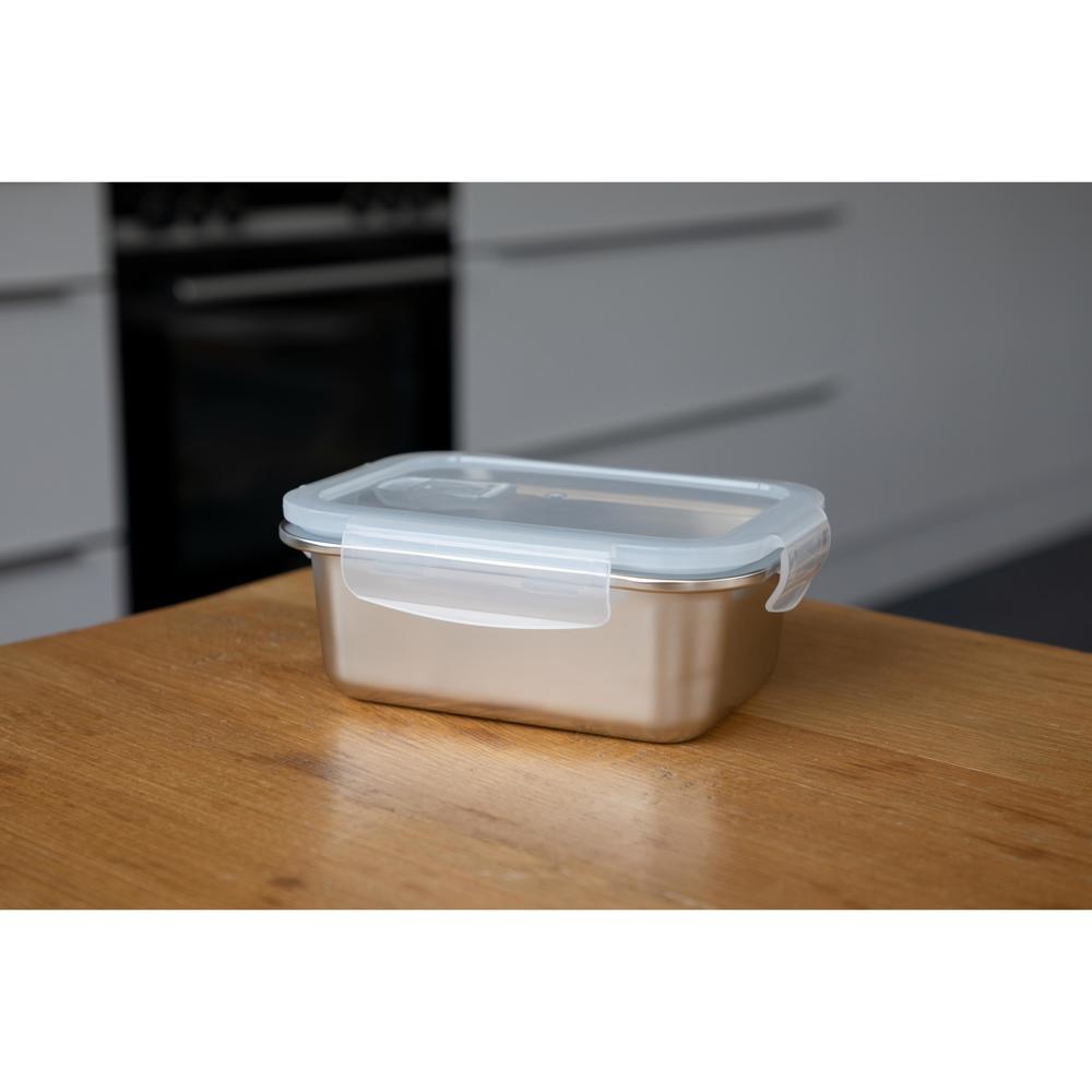 The ‘Heat’ storage container offers a practical and healthy solution for storing your food. It is leak-proof, microwave-safe and the lid is made of taste- and odour-neutral plastic. The base is made of sturdy stainless steel, making the entire product 100% recyclable.
