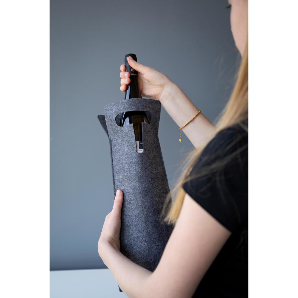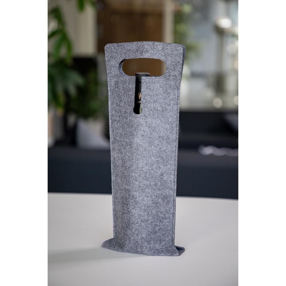 The felt bag "Bordeaux" in dark grey is perfect for transporting wine and champagne bottles in style. Made from robust RPET felt, it offers space for standard bottle sizes and is equipped with practical handles. Also perfect as gift packaging.