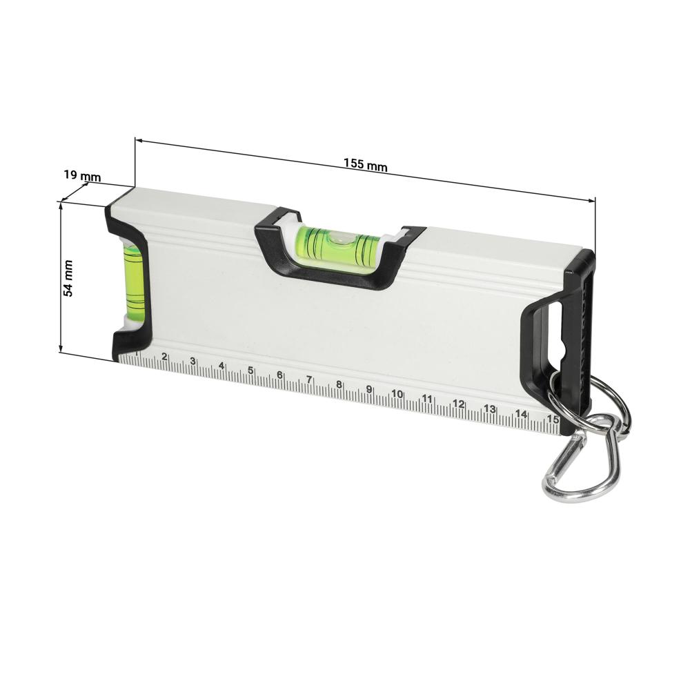 The spirit level "Misura" is the ideal tool for precise measurements and versatile applications. Made from durable aluminium, it offers robustness in a handy size of 15.5 x 1.7 x 5.2 cm. The yellow liquid ensures a clear and easy-to-read display. Thanks to the magnetic function, the spirit level can be easily attached to metal surfaces. The integrated snap hook makes it easy to carry around, while the additional measurements make the tool an indispensable companion for all building and craft projects.