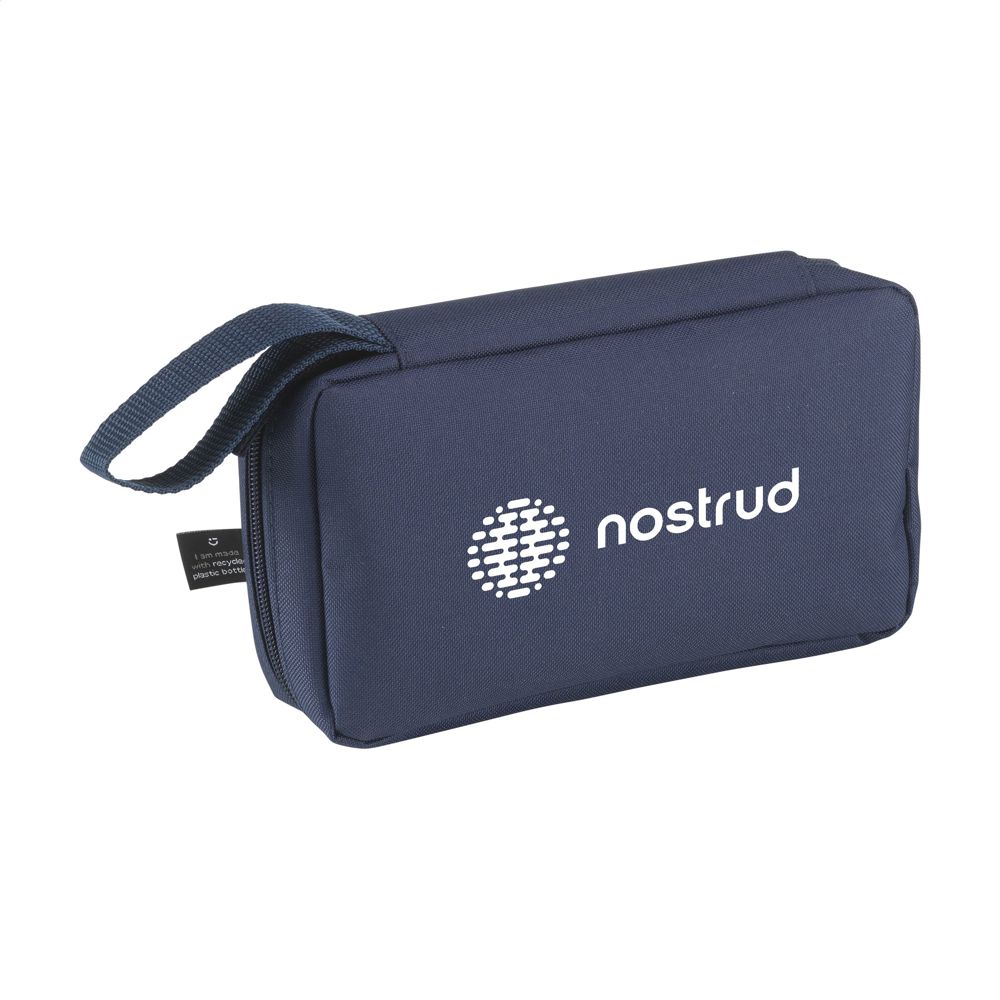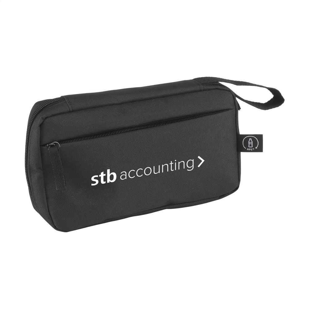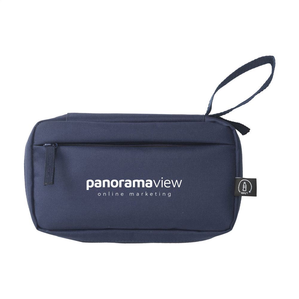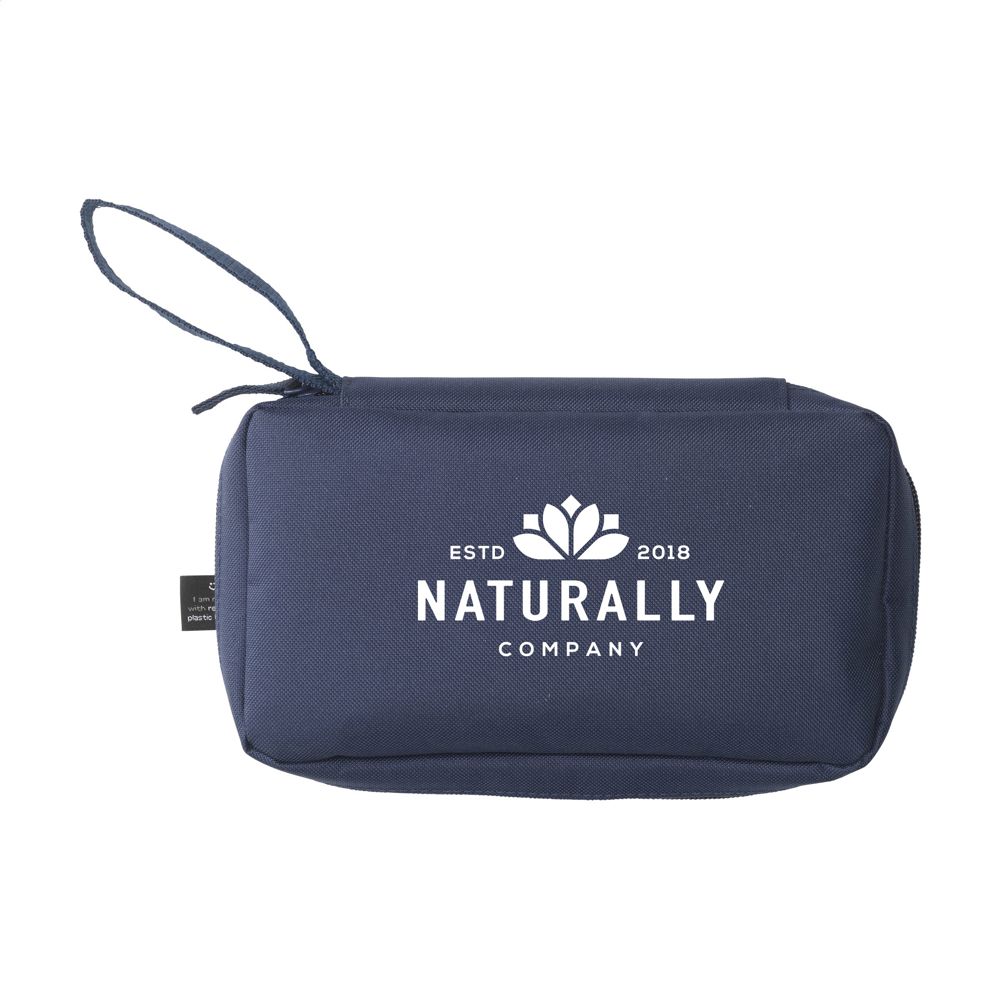 Pouch for organised and clear storage of cables, chargers and technical accessories. Made from 600D RPET polyester. The inside offers ample storage space, divided into several (mesh) compartments. With zip closure, an extra zip pocket on the exterior and a practical carrying loop. Ideal for travelling, but also handy at home or in the office. GRS-certified. Total recycled material: 88%.