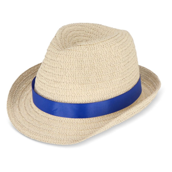 Plant straw hat with coloured band