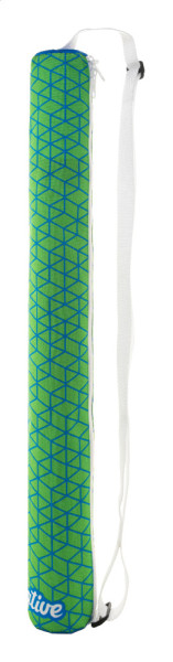 Custom made, can holder bag in 600D RPET polyester with zipped compartment and adjustable shoulder strap. With all over sublimation printed graphics and distinctive RPET label. Fits 5 pcs of 0,33 L standard-type aluminium cans. MOQ: 25 pcs.