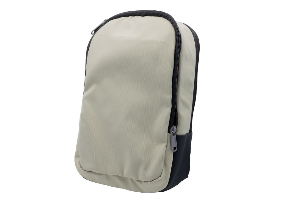 Holster bag in polycotton weighing 160g/m². 2 large storage spaces with zipped closure, each of them including a separation. Fully lined interiors. Back of the product padded. PU leather reinforcement under the bag. Adjustable nylon strap. Can be worn on the left or right side. Capacity: 1,8 L.