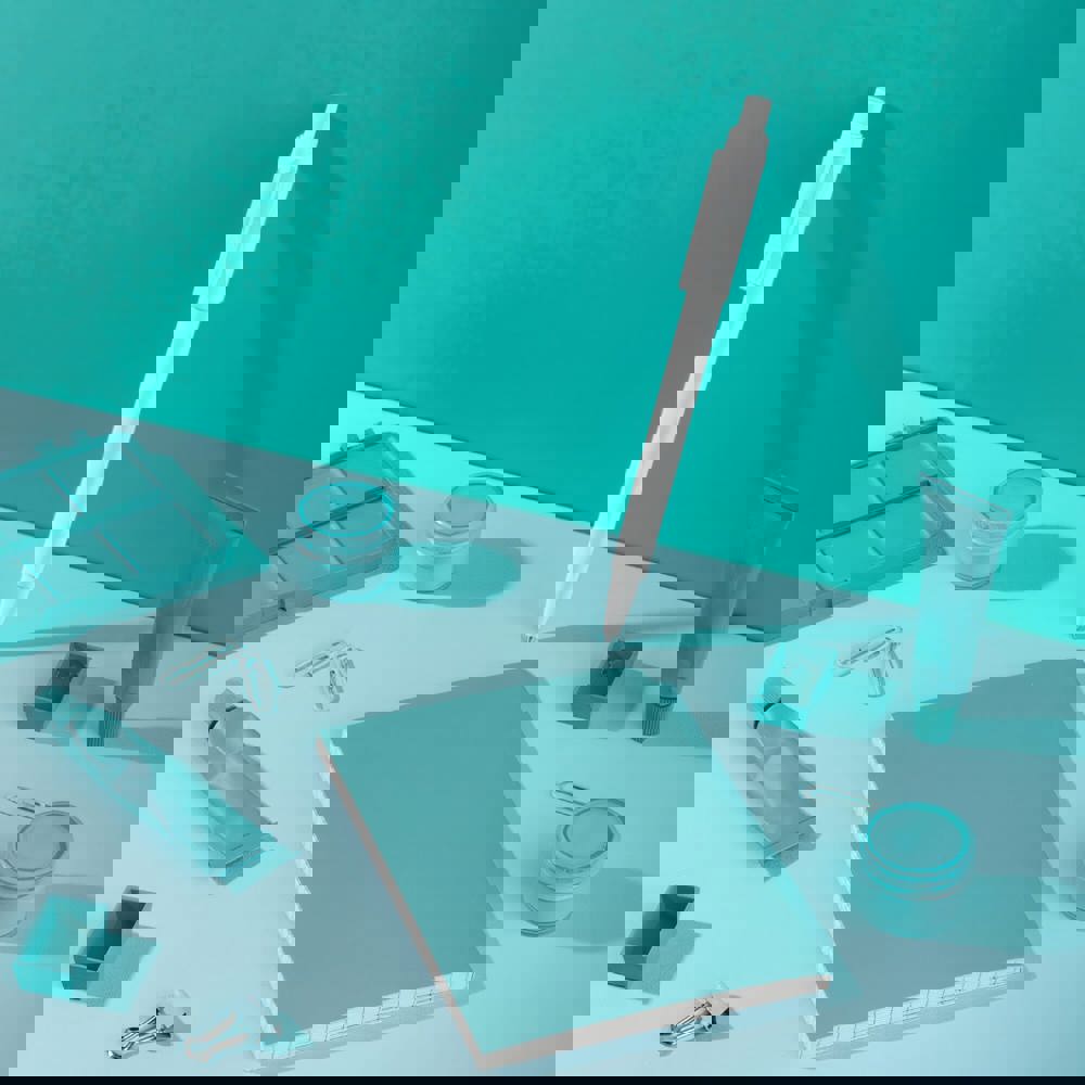 The Baron Colour ball pen with a white barrel and pusher and with a coloured clip and tip. The refill is a synthetic Jumbo refill and includes blue writing ink. It includes a pusher mechanism and is made of ABS, made in Europe. From orders of 5.000 pieces, you can choose your own colour combination.