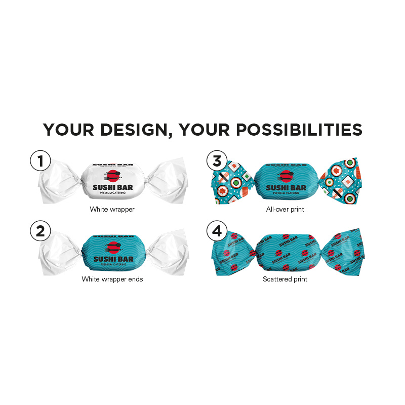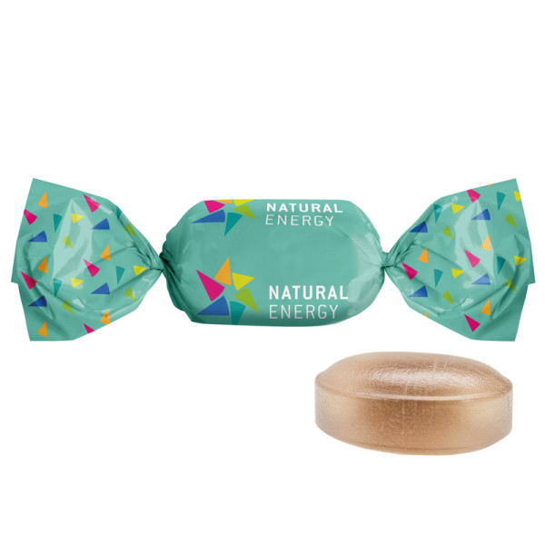 Sweet in a wrapper made of compostable white foil, filled, individually printed. Content: Mint... more