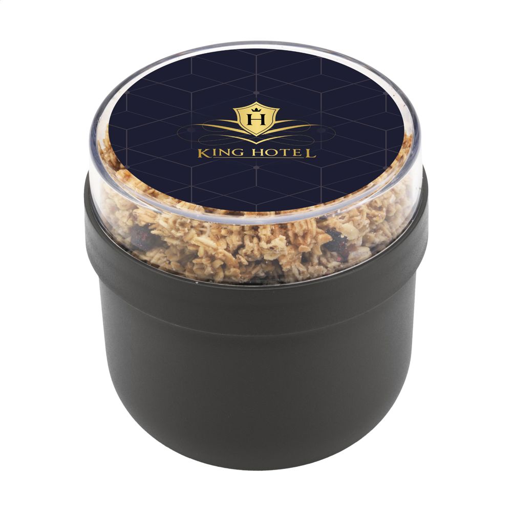 Plastic yoghurt cup from Brabantia. Fill this cup with your favourite to-go breakfast and eat the most important meal of the day at work, at school, on the train or wherever you want. The cup has two compartments that can be separated with a twist. The upper, transparent container (180 ml) is perfect for nuts, seeds, granola or fresh fruit. The cup (500 ml) has a large opening and is easy to fill with yoghurt or quark. This breakfast bowl is leak proof and suitable for the microwave, freezer and dishwasher. Washing by hand is recommended to preserve the imprint. 100% recyclable. With a 5-year manufacturer's warranty.