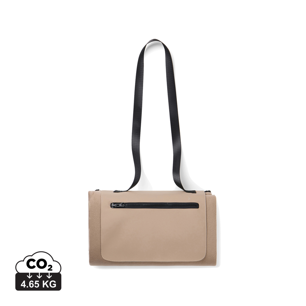 Head outdoors and bring the Baltimore picnic blanket with you. The blanket features a soft fleece surface for maximum comfort and a water-resistant PEVA backing that protects against moisture and cold. Equipped with a long handle for easy and comfortable carrying and a practical front zip pocket for keys, phone or other essentials. Certified by RCS (Recycled Claim Standard), RCS certification guarantees that the entire supply chain of recycled materials is certified. The total recycled content is based on the overall product weight. This product contains 47% RCS certified recycled polyester.