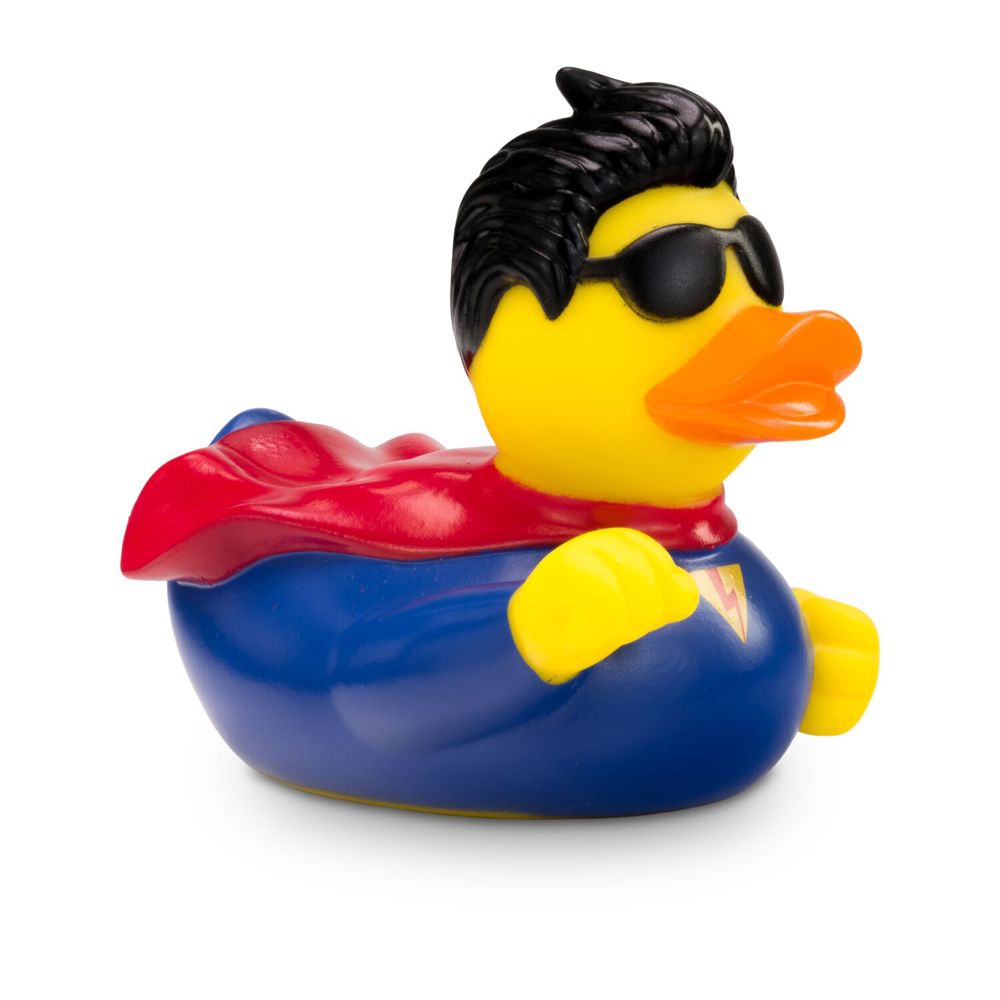 Here comes a real hero: Superduck is always there when help is needed. He wears his blue superhero suit with lightning print and his red cape with pride. A rubber duck that gives children courage and support in difficult times. Size: approx. 8 cm. Includes squeaker.