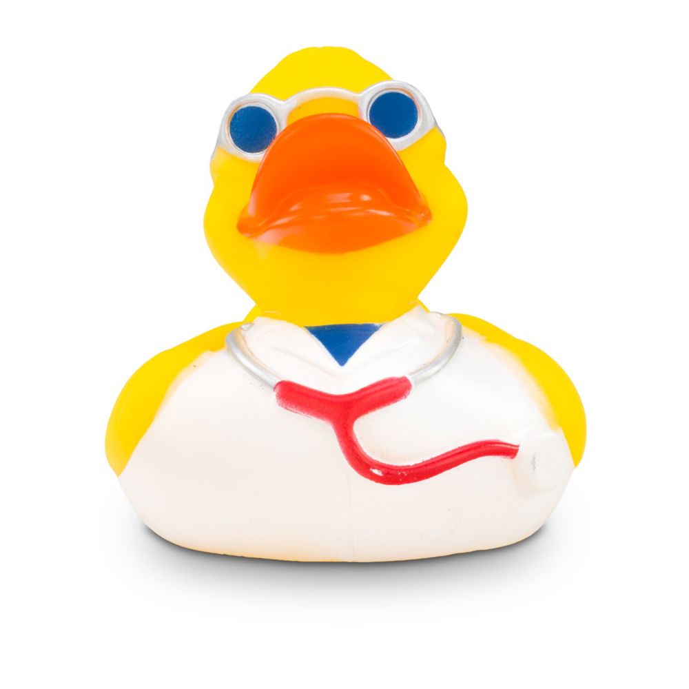 Here comes the duck with a doctorate - Max Medicus, the charming duck doctor. He wears a white doctor's coat and, with his stethoscope and glasses, is always ready for a friendly visit to the hospital or practice. Size: approx. 8 cm. Includes squeaker.