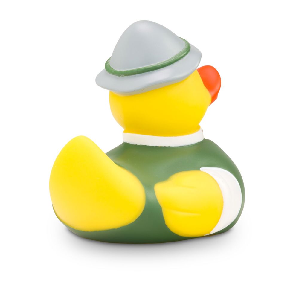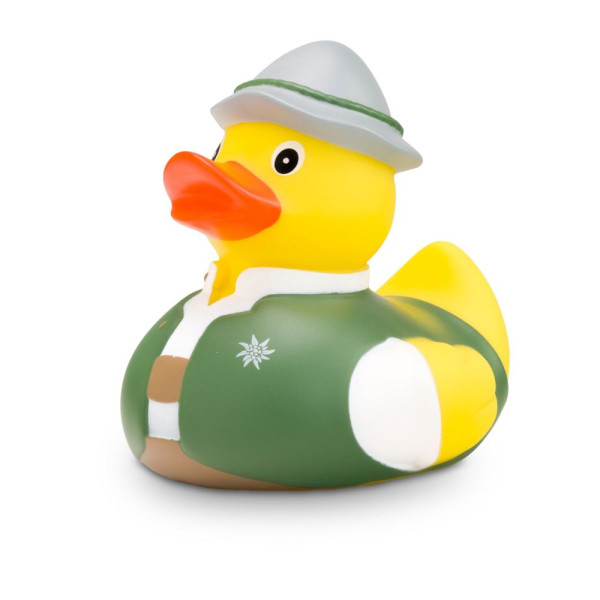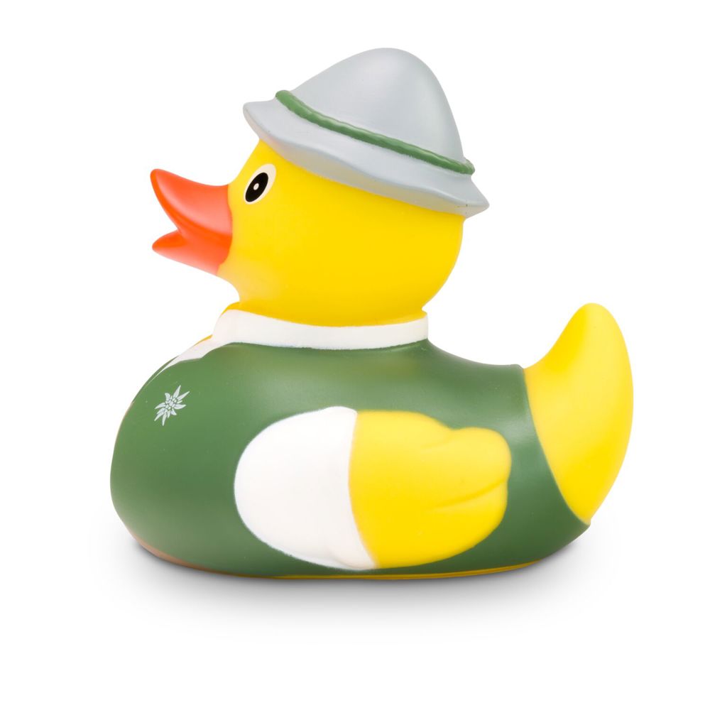 Servus! Anton Alm welcomes you to his Alpine home. He is wearing a white traditional shirt with a green vest including an edelweiss print. The traditional gray felt hat with a green cord is also a must. He feels very much at home on his mountain hut in the mountains, whether in the Allgäu in Bavaria, in Tyrol in Austria or in South Tyrol in Italy. Size: approx. 8 cm. Squeak valve included