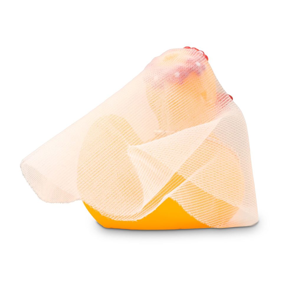 Bonnie bride waddles gracefully down the aisle. With a real tulle veil held in place by the pink tiara and a pearl necklace around her neck, the miniature bath duck is perfectly equipped for her big day. Original bath duck for weddings and hen parties. Size: approx. 6 cm. Squeak valve included