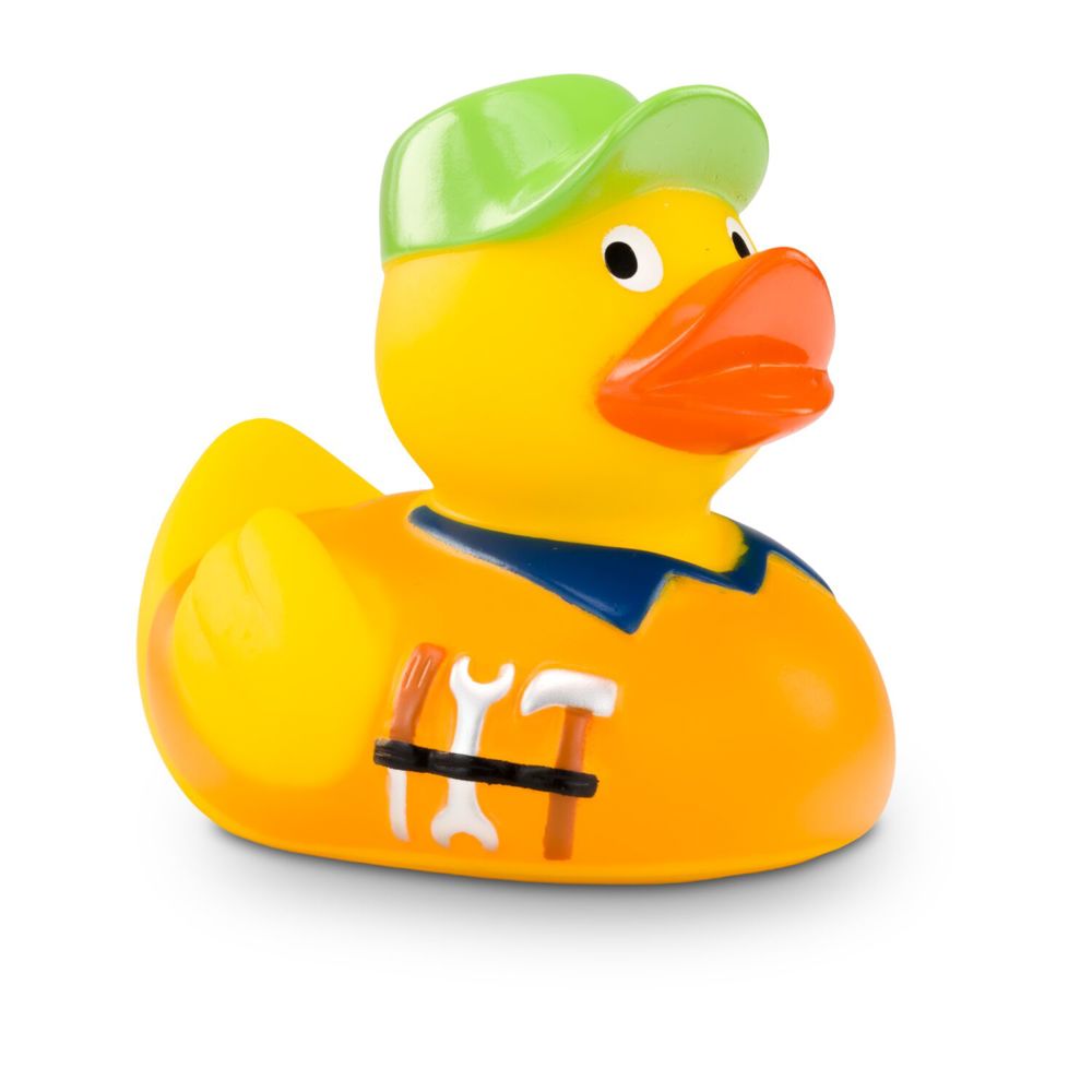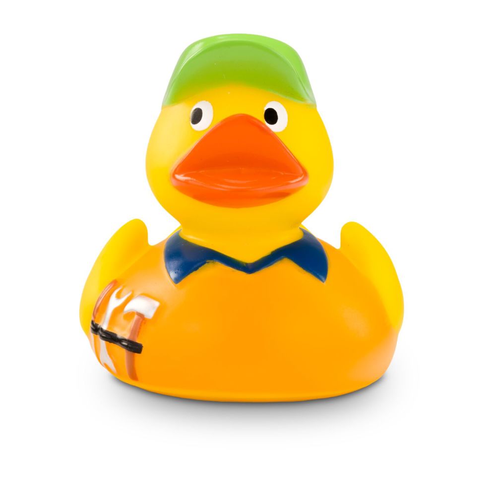 Promotional rubber duck Hugo craftsman with orange shirt