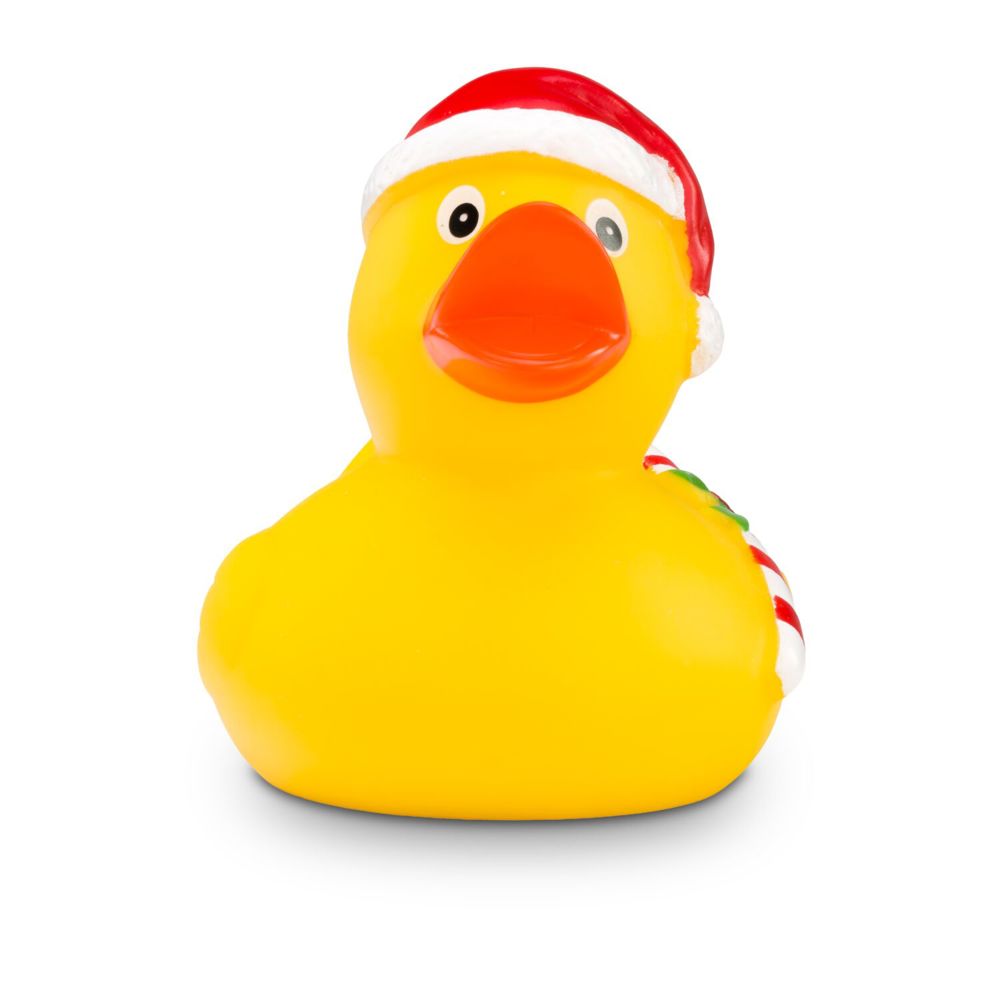 Candy Cane is the Christmas duck's best helper. He wears a red cap on his head, just like his boss, Claus Christmas. He also has a red and white candy cane under his wing - I wonder if he was about to bring it to you? This cute Christmas helper is the perfect companion for the most wonderful time of the year. Size: approx. 8 cm. Squeak valve included