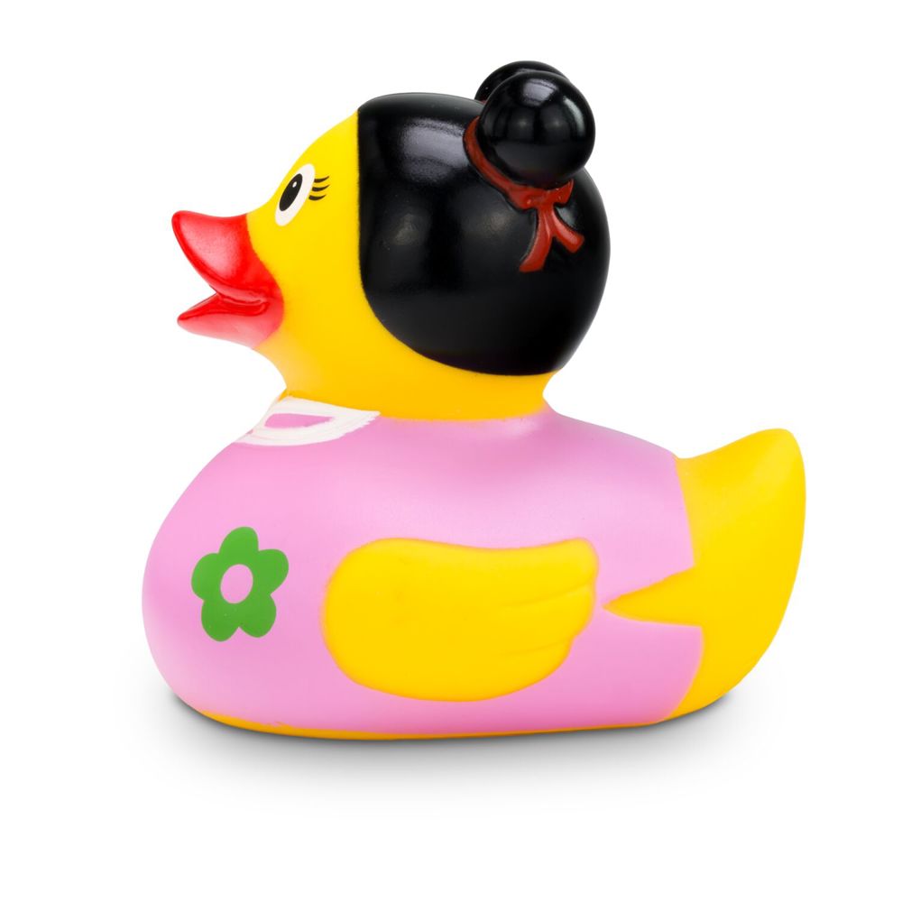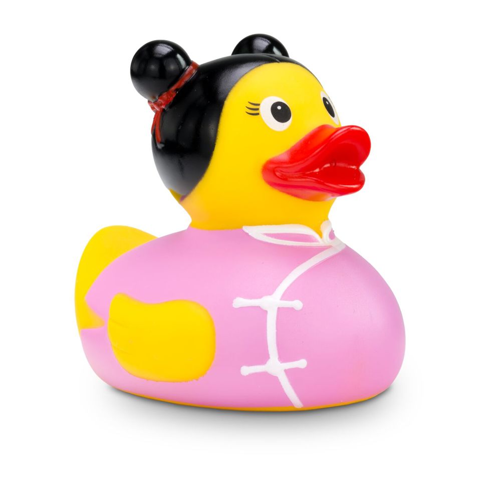 Kim Kimono has come a long way from Asia. Her pink kimono and bun hairstyle with red accents bring traditional Far Eastern charm to the bathroom. Size: approx. 8 cm. Squeaker valve included