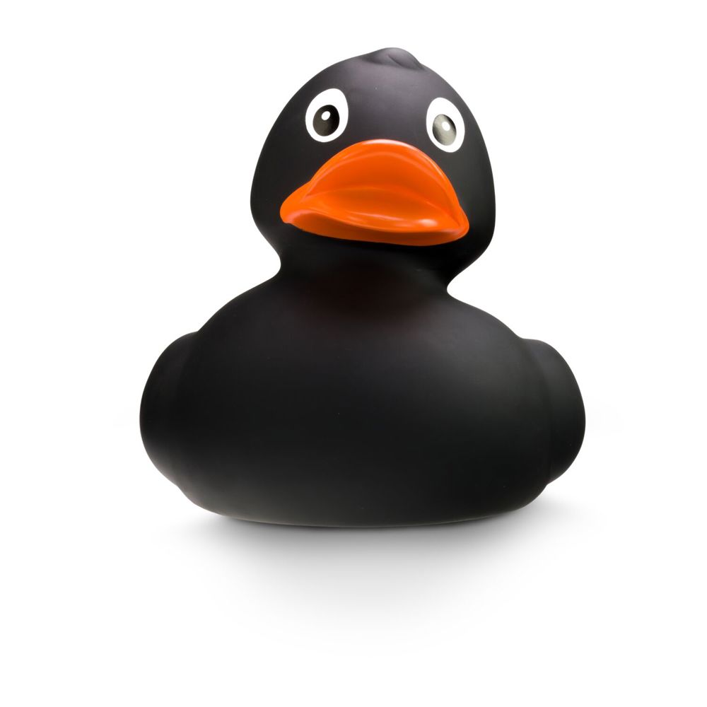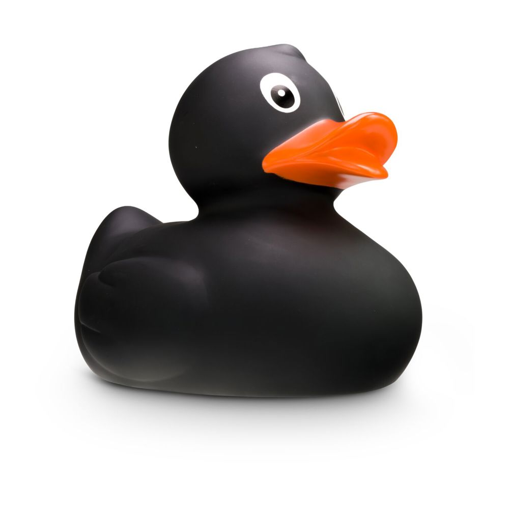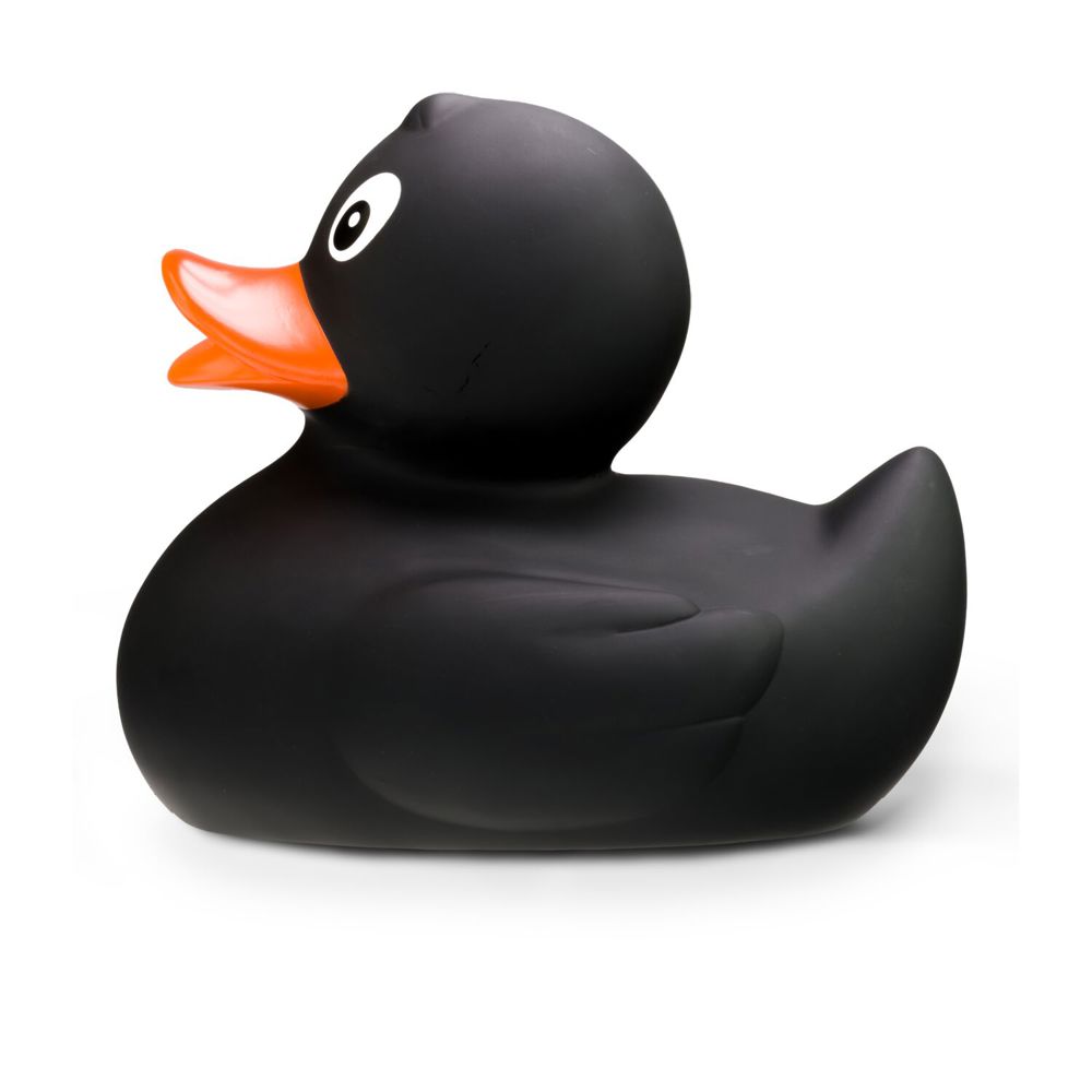 With a proud length of 30 cm, Blacky XXL is the king in black in the duck pond and is guaranteed to cause a stir. Its deep black plumage, bright orange beak, elegant body, and extra-large squeaker make this giant rubber duck a real highlight for young and old alike. Blacky XXL has other siblings, also in other colors. Size: approx. 30 cm. Includes squeaker.