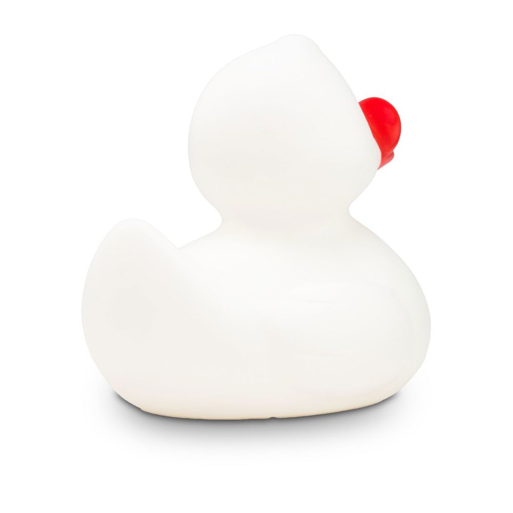 Snow is no ordinary rubber duck. She is the snow queen of the duck pond. With her immaculate white plumage, Snow looks both classic and timeless, while her red beak provides an elegant contrast. The beautifully shaped duck body makes it a popular classic for any bathroom in its standard size. This duck is also available in other sizes and colors - perfect for lovers of classic rubber ducks. Size: approx. 8 cm. Includes squeaker valve