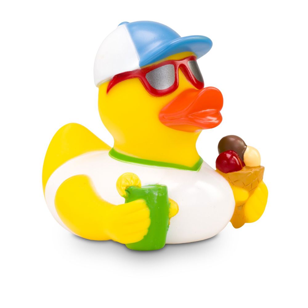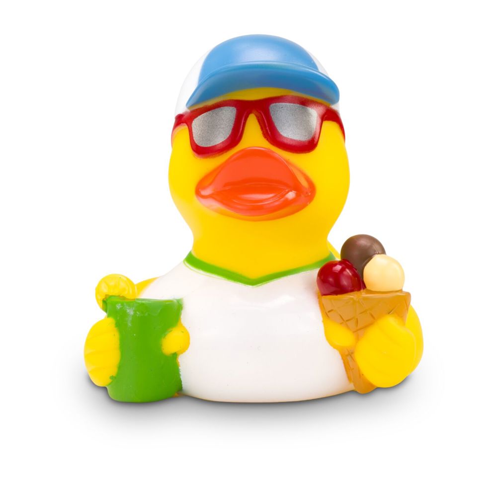 Simon Sommer is the sun king par excellence. With cool sunglasses, a casual cap, and a white shirt, he throws himself into summer. To keep from overheating in the heat, he slurps a delicious ice cream and a refreshing drink with lemon. That's how he enjoys summer to the fullest. Size: approx. 8 cm. Includes squeaker valve.