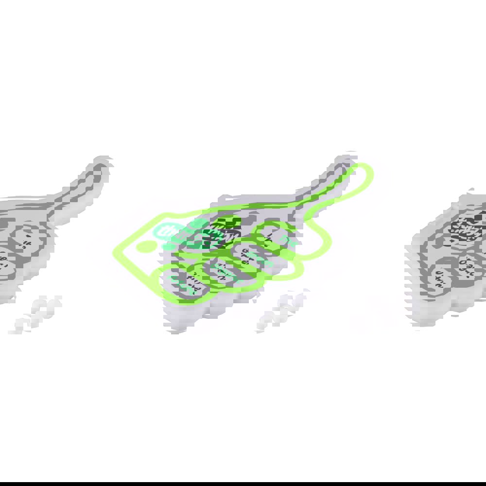 Mint dispenser in the shape of a thumb, featuring 1 or 2 color printing on the top, filled with approx. 6 grams of sugar-free mints