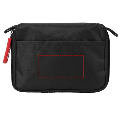 MDR Class 2a First Aid Kit. The nylon pack contains 31 pieces of First Aid equipment with a shelf life of 5 years. Contents: 9 plasters, 8 safety pins, 5 dry swabs, 4 skin cleansing swabs, 1 triangular bandage, 1 mini scissor, 1 elastic bandage, 1 medical tape, and 1 instructions manual.
