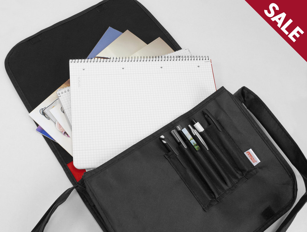 The Wiesbaden bag by Joytex is a shoulder bag with a long and soft strap and a large interior pocket. It is made of the light-weight and tear-resistant Premium PP Non-woven fabric. The Wiesbaden model is ideally suited for last-minute visits to commercial shows and other events. It is the perfect advertising medium for exhibitors at shows, academies and organisers of seminars. This economical shoulder bag is not only very light, but also comes with Velcro fastening and a pocket that holds 6 pens. Its combination of plain and structures finishes makes the Wiesbaden model to a real eye-catcher.