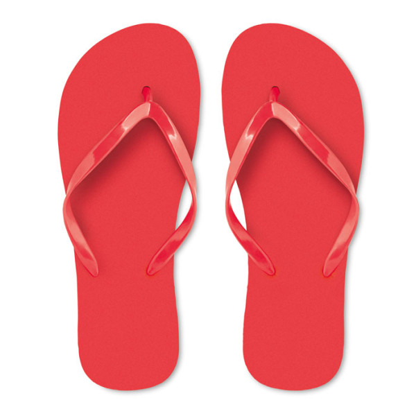 Beach slippers in polyethylene sole with pvc strap. 2 sizes available, M fits 36-39 and L fits 40-43.