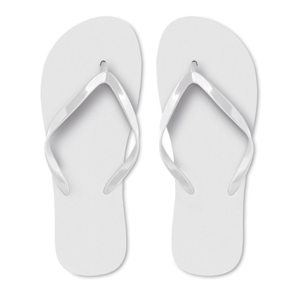 Beach slippers in polyethylene sole with pvc strap. 2 sizes available, M fits 36-39 and L fits 40-43.
