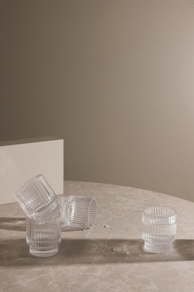 Discover the perfect balance between function and elegance with our tumbler glasses. The timeless design with classic, clean lines suits all types of occasions when you want to serve refreshing drinks. The glasses are dishwasher safe and feature a stackable design that maximises storage space. Made from soda-lime glass. Holds 250 ml. Cold drinks only.