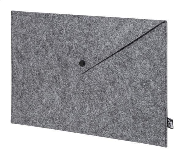 RPET felt document bag or laptop pouch with button closure. Fits laptops up to 13". With distinctive RPET label.