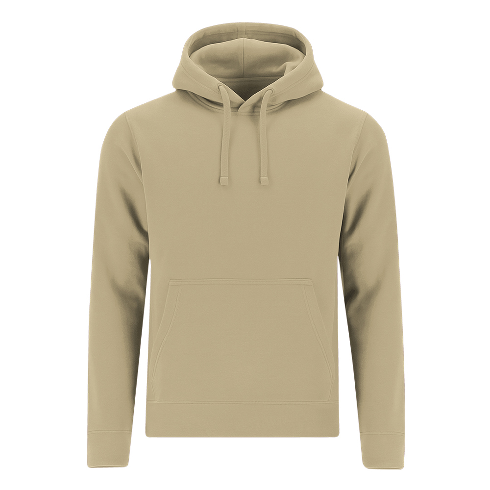 Hooded sweatshirt with lined hood in matching double-layer fabric. Made of cotton and polyester in soft brushed fleece 280 g/m. Features kangaroo pocket, adjustable drawstring with matching metal eyelets, reinforced neck tape, and 1x1 rib knit cuffs and waistband with elastane for better fit and comfort.