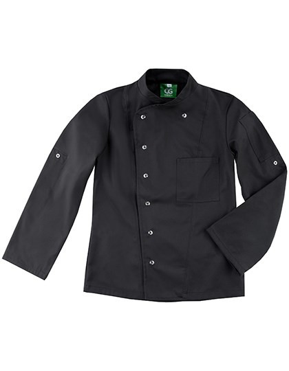 Polyester made from recycled PET bottles/organic cotton | Made in Germany | Slightly fitted | Press studs | Front breast pocket | Sleeves can be rolled up and secured with a loop and press button | Vent in the back for mobility | All colours 95°C washable | Minimum iron | Colourfast | Suitable for industrial laundry and finishing
