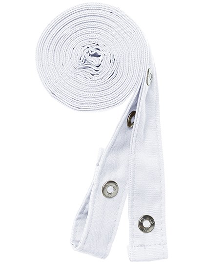 Two straps for pinafores, each 230 cm long and 2.5 cm wide | With press stud for attaching to the eyelet on the apron | Straps crossed at the back to relieve neck strain and can be freely adjusted | High refined blended fabric | Crease-resistant | Durable | Washable up to 95°C | Suitable for industrial laundry and finishing