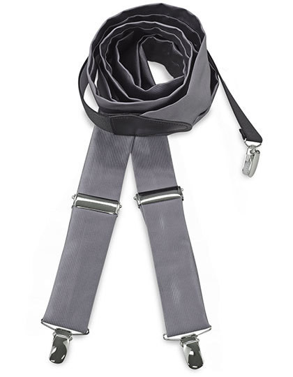 Braces made of tie fabric | Slightly shiny and with a fine stripe structure | Width 3.5 cm | Adjustable length CatalogNr: CGW1511 Composition: 100% Polyester Care Instructions: Non-washable Product: Belts & braces Colorfulness: 1-coloured Properties: Work clothing Production Certificates: OEKO-TEX® STANDARD 100 Collection: Carnival accessories|Christmas_Business, gastronomy & service|SW Gastronomy|Traditional festivals and brass bands|Gastronomy & Bistro|Bachelorparty|Articles for the service staff|Sectors Hotel and gastronomy|Collection Catering & Gastronomy 2024|Must Haves kitchen accessoires|Wedding Menu: Accessories|Men Composition: Polyester (partially)