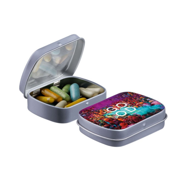 Mini hinge tin with candy
