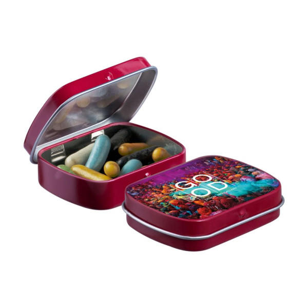 Mini hinge tin with candy