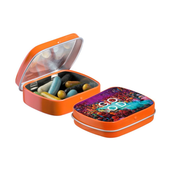 Mini hinge tin with candy