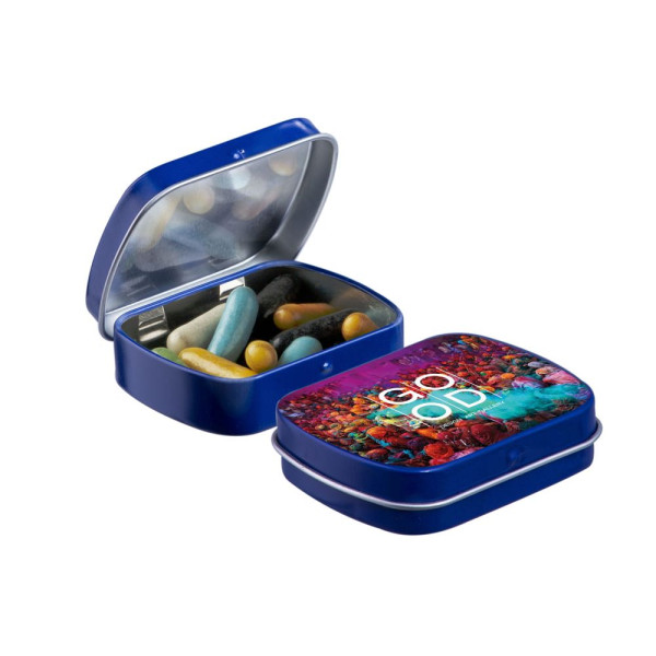 Mini white hinge tin with approx. 23 grams of Mini Choco's, printed in full color. Includes... more
