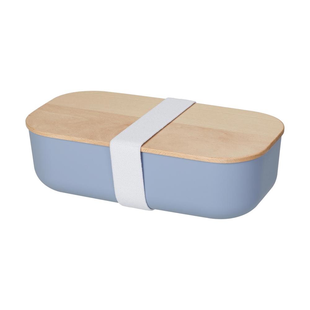 A real eye-catcher in the lunchroom. The chic storage box consists of three components: A tray made of food-safe plastic, a lid made of beech wood and an elastic band that holds the tin securely together. As the material of the lid is natural beech wood, there may be variations in colour and grain.